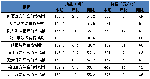 表1:陜西煤炭?jī)r(jià)格指數(shù)