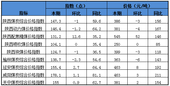 一、本期陜西煤炭價格指數(shù)及代表規(guī)格品價格情況