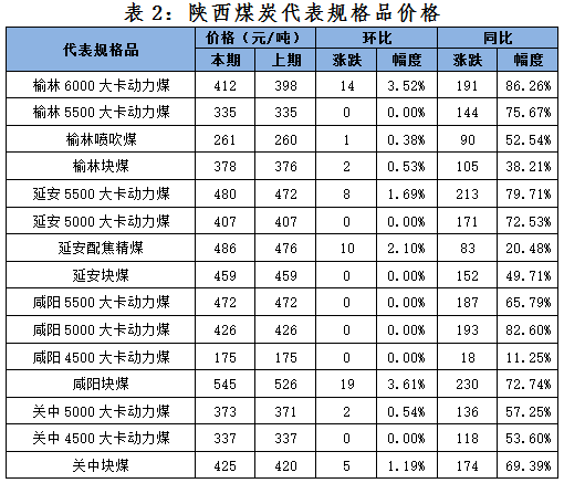 一、本期陜西煤炭?jī)r(jià)格指數(shù)及代表規(guī)格品價(jià)格情況