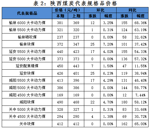 一、本期陜西煤炭?jī)r(jià)格指數(shù)及代表規(guī)格品價(jià)格情況