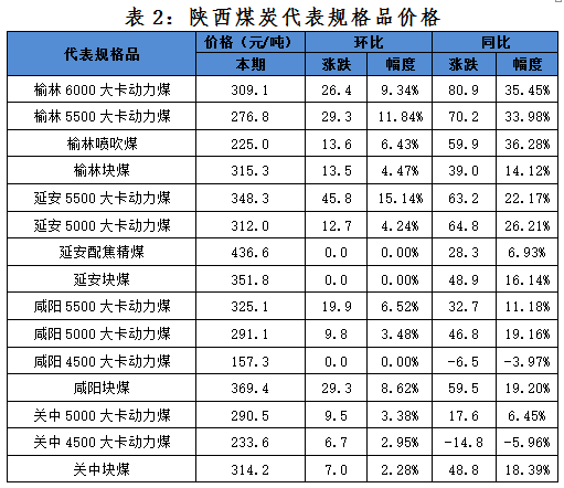 一、本期陜西煤炭價格指數(shù)及代表規(guī)格品價格情況