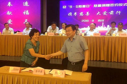 8月26日下午,陜西省慈善協(xié)會舉行迎“中華慈善日”慈善捐贈集中簽約儀式,陜西省副省長姜鋒、省慈善協(xié)會終身名譽(yù)會長徐山林,名譽(yù)會長陸棟,省慈善協(xié)會會長劉維隆、省國資委主任胡保存、省民政廳廳長趙正才、省委宣傳部常務(wù)副部長劉斌,陜煤化集團(tuán)董事長、黨委書記楊照乾,常務(wù)副總經(jīng)理尤西蒂,總經(jīng)理助理、工會會負(fù)責(zé)人李向東,以及其他捐贈單位代表出席會議。