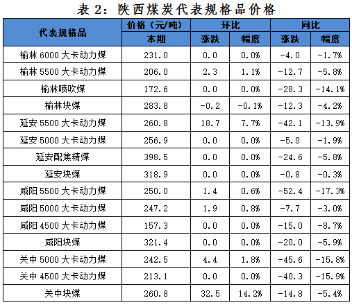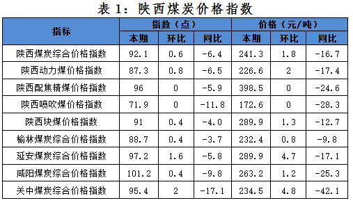 一、本期陜西煤炭價格指數(shù)及代表規(guī)格品價格情況