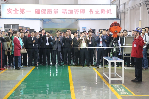 “這完全可以參加‘挑戰(zhàn)不可能’。”在機(jī)電公司機(jī)修總廠,今年51歲的一線職工張秀榮在10米高處,利用行車吊鉤上直徑6毫米的鋼針把這些螺母從大到小疊放在6米之外的2號(hào)桌子上,行車吊著螺母平穩(wěn)地左移右挪,有如人手,靈活自如。同樣的作業(yè)環(huán)境,張師傅繼續(xù)用行車吊鉤上直徑1毫米的鋼針沿不足3毫米的瓶蓋邊將兩瓶啤酒從1號(hào)桌吊運(yùn)至5米之外的小桶內(nèi)。這兩項(xiàng)功力技能展示引來現(xiàn)場(chǎng)陣陣掌聲和叫好聲。一走下行車,張師傅迅速就被照相機(jī)、攝像機(jī)、手機(jī)包圍了起來,與會(huì)代表拉著張師傅合影留念,說:“這只有在電視上看到的表演,今天,我們?cè)邳S陵礦業(yè)看到了?!?/p>