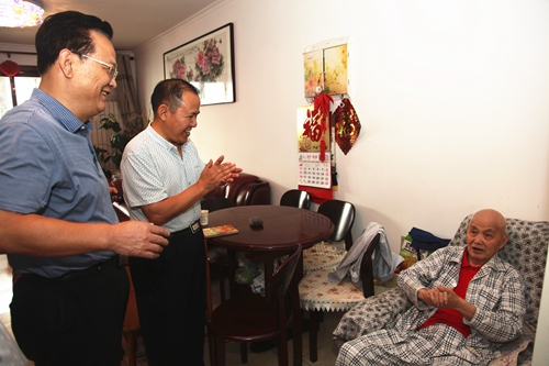 干休所內(nèi),范萬廷與李老親切交談,認(rèn)真聽取他講述當(dāng)年的抗戰(zhàn)經(jīng)歷,詳細(xì)詢問了老同志的生活起居和身體健康狀況,并送上慰問金。范萬廷表示:“今年是抗戰(zhàn)勝利70周年,老紅軍、老戰(zhàn)士們曾經(jīng)背井離鄉(xiāng)在戰(zhàn)場上出生入死,為國家和人民做出了巨大貢獻(xiàn),我代表省委老干局對您表示最崇高的敬意和最衷心的感謝!希望您安心休養(yǎng)、長壽健康、生活幸福?!瘪R富元囑咐道,相關(guān)部門負(fù)責(zé)同志一定要做好離退休老干部的服務(wù)工作,讓老同志們生活無憂、安享晚年。