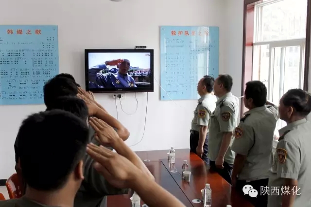 韓城礦業(yè)公司救護大隊現(xiàn)役指戰(zhàn)員90%是退伍老兵,他們集體觀看了紀念大會直播?!叭w起立,向參加抗戰(zhàn)的老兵敬禮!”當有抗戰(zhàn)老兵組成的方隊出現(xiàn)在電視屏幕時,觀看閱兵儀式的救護隊員們由衷的用軍人的禮節(jié)向抗戰(zhàn)英雄代表表達敬意,救護隊員們一下子回到了昔日的軍營,莊嚴肅穆的軍禮于無聲處的展現(xiàn)了退伍老兵愛國情懷。戰(zhàn)略導彈方隊過來了,看到嶄新的自發(fā)研制的導彈,隊員們自豪的唱起了《歌唱祖國》,發(fā)自這些退伍軍人內心自豪的歌聲,久久在會議室里回蕩。