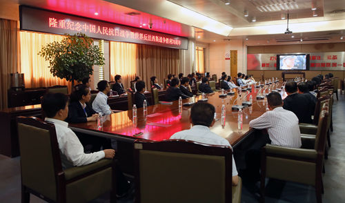 9月3日,該公司組織機關全體人員在視頻會議室,集中觀看了這場隆重紀念中國人民抗日戰(zhàn)爭暨世界反法西斯戰(zhàn)爭勝利70周年大會的現(xiàn)場轉播。