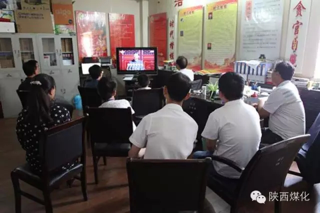 9月3日10時許,韓城礦業(yè)公司及所屬各單位黨員干部,職工家屬守候在調度室、會議室、學習室、井口候車廳等處電視機前,以及辦公室電腦前收看大會現(xiàn)場直播。