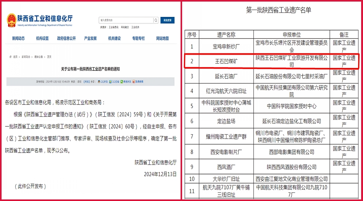 近日,陜西省工業(yè)和信息化廳公布了第一批陜西省工業(yè)遺產(chǎn)名單,公司王石凹煤礦憑借其獨(dú)特的歷史價(jià)值、社會(huì)價(jià)值和獨(dú)特的工業(yè)景觀(guān)入圍名單。