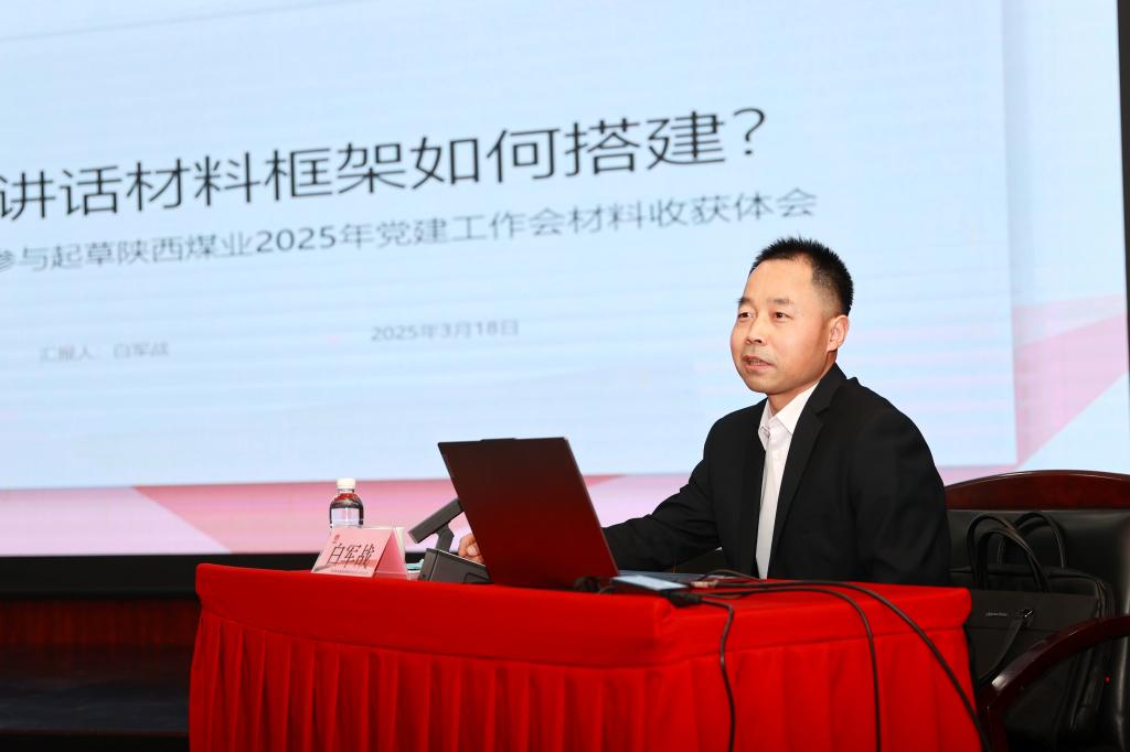 公司綜合管理部副部長陳宇龍、綜合管理部秘書白軍戰(zhàn),就陜煤集團、陜西煤業(yè)2025年工作會、黨建工作會精神進行了解析和宣貫,并就撰寫大型會議、重大活動的文稿起草以及如何提升公文寫作水平和技法技巧,向與會人員講解了相關(guān)知識,分享了思考感悟和經(jīng)驗體會。