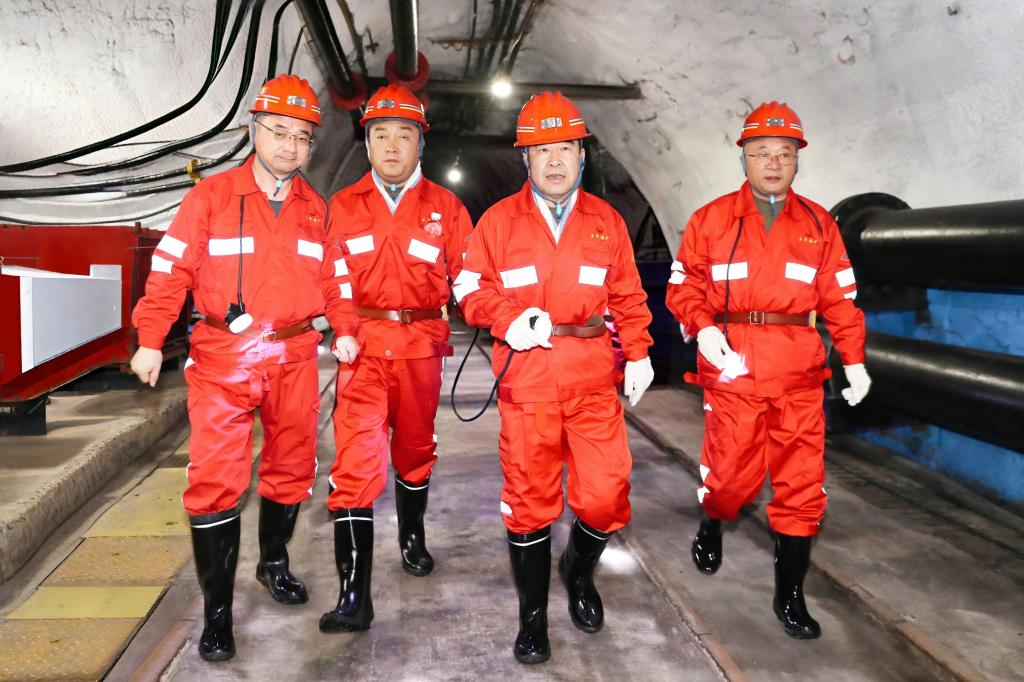 在井下現(xiàn)場,趙福堂實(shí)地查看了礦井生產(chǎn)系統(tǒng)、災(zāi)害治理情況,聽取了盤區(qū)接續(xù)、系統(tǒng)建設(shè)、重點(diǎn)項(xiàng)目等工作匯報(bào),并與現(xiàn)場人員進(jìn)行了深入交流。