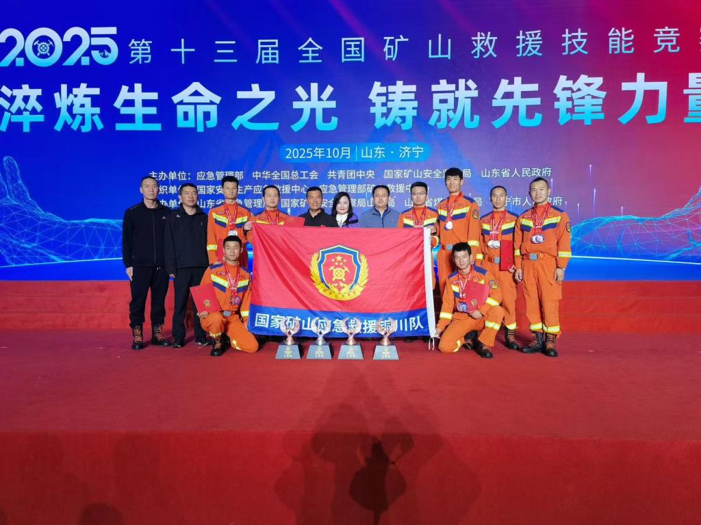 近日,第十三屆全國礦山救援技能競賽在山東濟寧圓滿收官。公司救護大隊憑借精湛技能與頑強拼搏的作風,在礦山組理論考試、技術(shù)員筆試、指揮員筆試、醫(yī)療急救(單人賽)、醫(yī)療急救(團體賽)等科目的激烈比拼中脫穎而出,一舉斬獲技術(shù)員應用題筆試第一名、指揮員個人全能第二名、技術(shù)員個人全能第二名、醫(yī)療急救(單人賽)第三名、理論考試(團體賽)第三名、繩索救援第四名、指揮員戰(zhàn)術(shù)題筆試和災害氣體分析第五名、醫(yī)療急救和呼吸器操作第六名及最佳拼搏獎的優(yōu)異成績,用硬核實力詮釋了銅煤人的使命擔當。