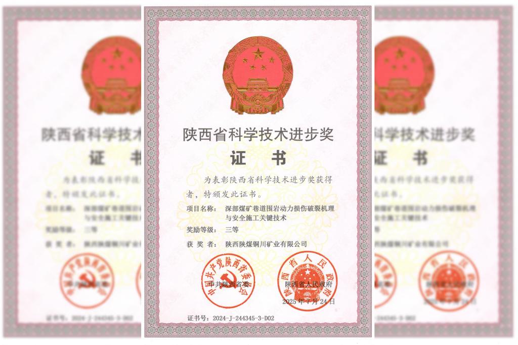 近日,中共陜西省委辦公廳公布了《中共陜西省委陜西省人民政府關于2024年度陜西省科學技術獎勵的決定》,公司《深部煤礦巷道圍巖動力損傷破裂機理與安全施工關鍵技術》科研項目獲得陜西省科學技術進步三等獎。
