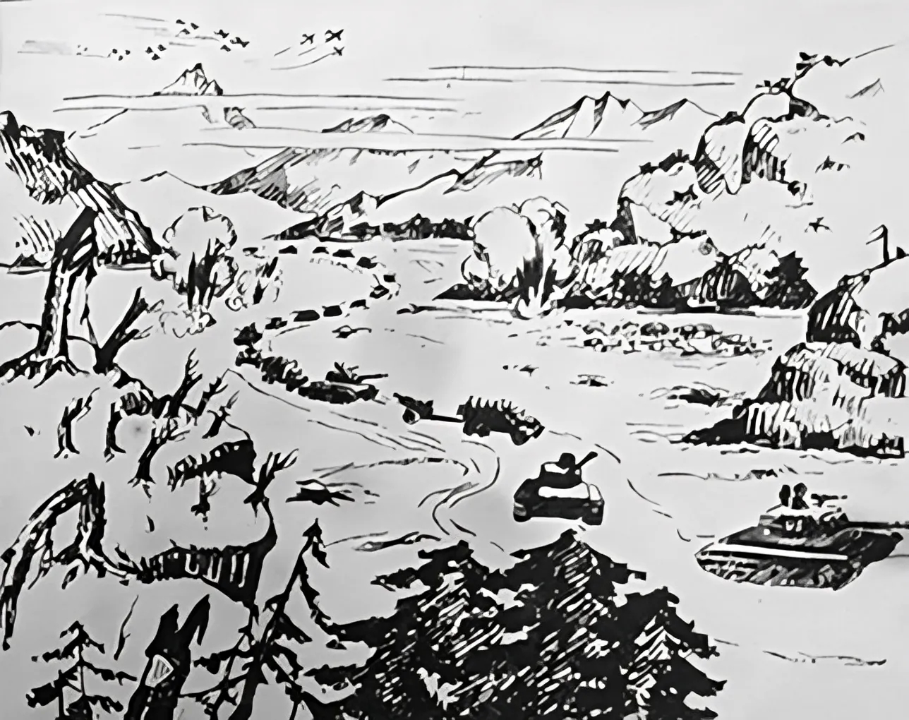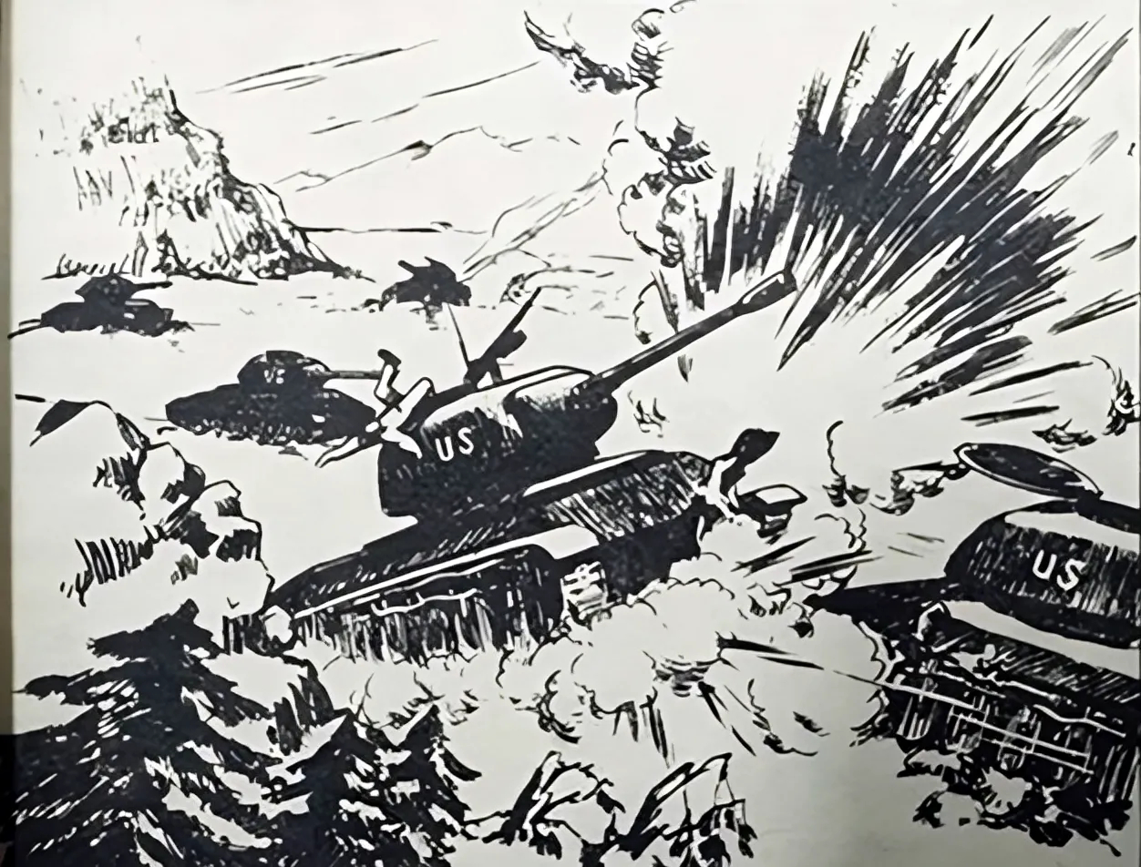 18日清晨,當(dāng)美軍的四輛坦克大搖大擺駛來時,牛瑞山在心中吶喊:“瞧好吧美國佬,那里有地雷!”。頃刻之間,隨著“轟”的一聲巨響,首輛坦克應(yīng)聲癱瘓、趴窩不前。這一刻,牛瑞山心中涌起難以言表的激動——這可是他炸毀的第一輛美軍坦克?。?/p>
