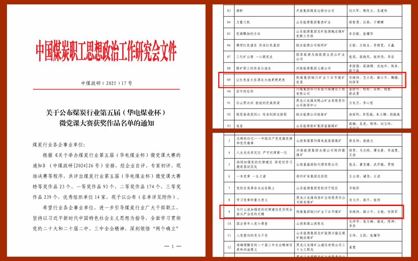 公司在全國煤炭行業(yè)微黨課大賽和主題征文活動中獲多項榮譽