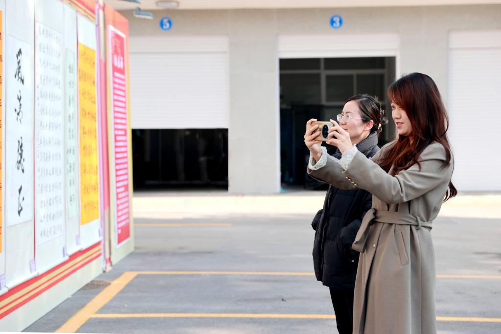 展覽中,一幅幅精美的書畫作品錯落有致地懸掛在機(jī)關(guān)樓兩邊,吸引了眾多職工與藝術(shù)愛好者駐足欣賞。在書法作品區(qū),有的作品筆鋒剛勁有力,彰顯出企業(yè)勇往直前的磅礴氣勢;有的作品則筆法飄逸靈動,以詩詞歌賦的形式抒發(fā)著職工對企業(yè)的熱愛與贊美之情。美術(shù)作品區(qū)同樣精彩紛呈,色彩斑斕的畫作,生動描繪了現(xiàn)代化礦區(qū)的嶄新風(fēng)貌和礦工們的工作與生活場景,傳遞出一代代銅煤礦工特別能吃苦、特別能戰(zhàn)斗、特別能奉獻(xiàn)的“三特” 精神。