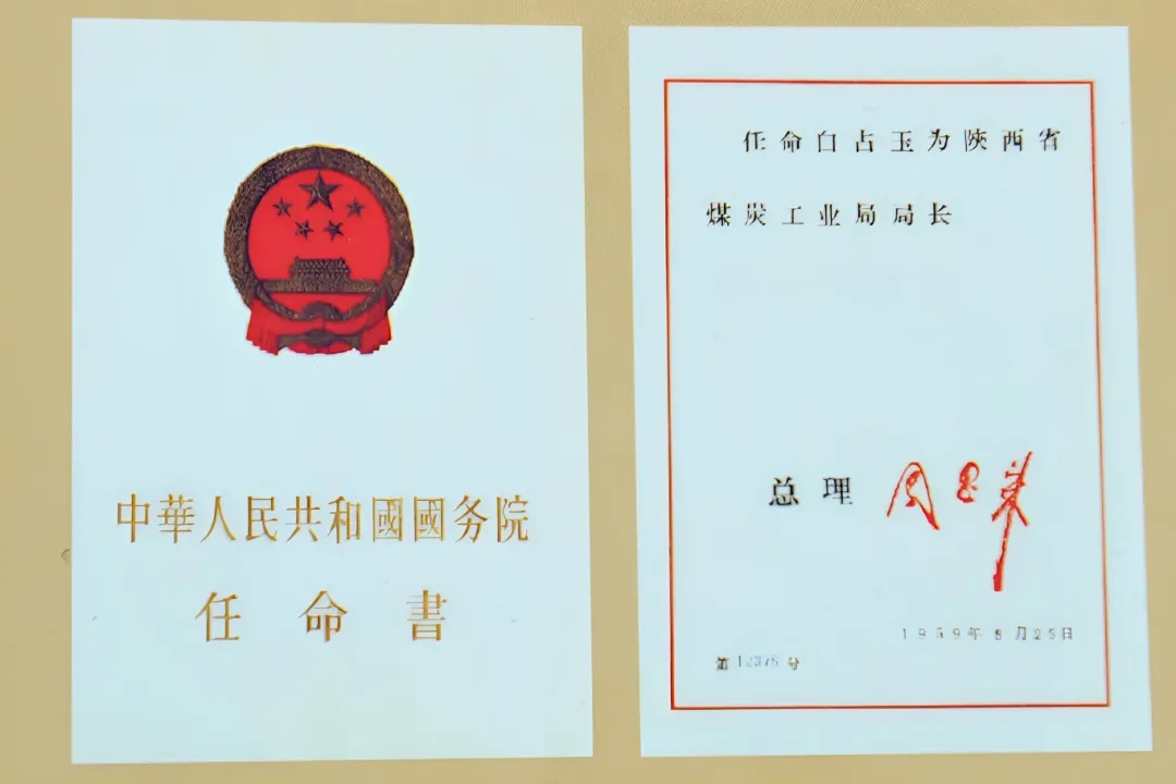 銅川礦務局的第一任局長白占玉由周總理簽任命狀。