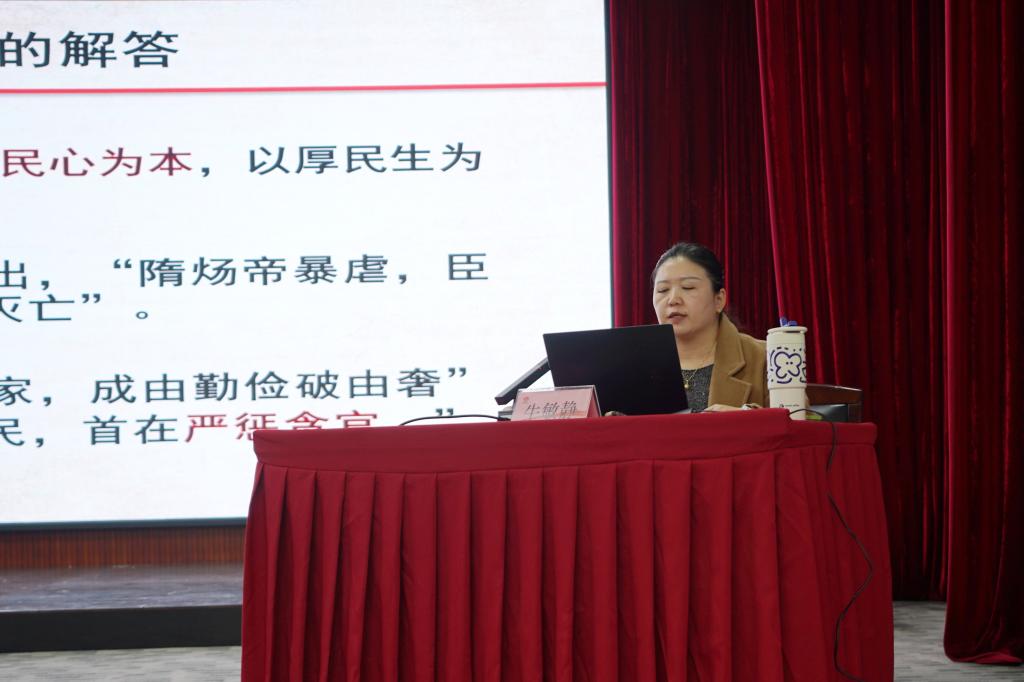 牛敏靜教授向大家講解了全面從嚴(yán)治黨的重要性、加強(qiáng)黨同廉政建設(shè)、推進(jìn)黨的自我革命、加強(qiáng)黨的領(lǐng)導(dǎo)、增強(qiáng)黨的創(chuàng)造力、加強(qiáng)黨員干部教育培訓(xùn)、加強(qiáng)黨的社會(huì)基礎(chǔ)工作等方面對(duì)如何堅(jiān)定不移推進(jìn)黨的自我革命進(jìn)行了注解。通過(guò)解讀,深刻闡明了全面從嚴(yán)治黨、推進(jìn)黨的自我革命是新時(shí)代中國(guó)共產(chǎn)黨的重要任務(wù),也是實(shí)現(xiàn)中華民族偉大復(fù)興的關(guān)鍵所在。只有堅(jiān)持全面從嚴(yán)治黨和自我革命的要求,才能保證我們黨永遠(yuǎn)走在時(shí)代前列,促進(jìn)黨和國(guó)家事業(yè)的長(zhǎng)遠(yuǎn)發(fā)展。