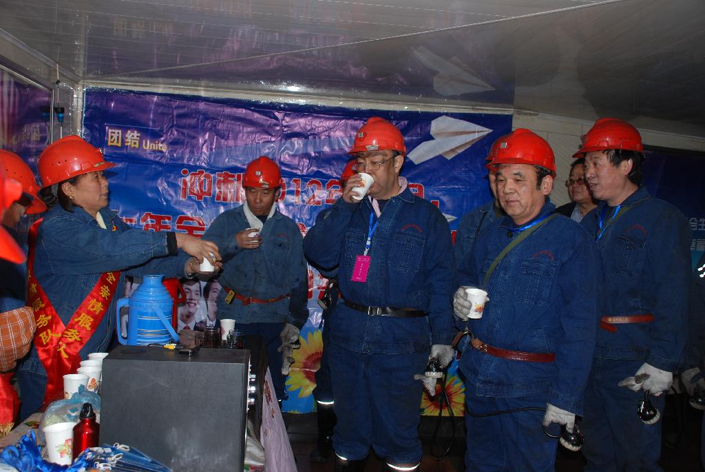 12月5日,礦業(yè)公司黨委黃河書記在該礦深入井下調(diào)研指導工作時,當他經(jīng)過井口“礦嫂服務隊”的服務站時,礦嫂們連忙給他端上了熱騰騰的豆?jié){,當他了解這是“礦嫂服務隊”為配合礦上“沖刺12月,實現(xiàn)全年安全零目標”開展的一項親情服務活動時非常高興;當聽了“礦嫂服務隊”先進事跡并看到她們開展的一系列安全親情服務活動后,黃河書記說,徐家溝煤礦的“礦嫂服務隊”很有名氣,活動也很有創(chuàng)意,很值得宣傳,更值得在全公司學習和推廣,你們的可貴之處就是多年來能夠堅持開展安全親情活動,為徐家溝煤礦實現(xiàn)連續(xù)安全生產(chǎn)七年做出了成績,希望你們繼續(xù)堅持下去,更好地打造好這張品牌,為安全生產(chǎn)做出更大的貢獻。