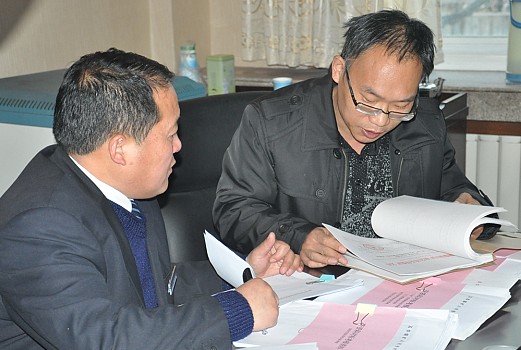 督導(dǎo)組成員仔細(xì)查閱玉華礦對標(biāo)管理工作各項基礎(chǔ)資料