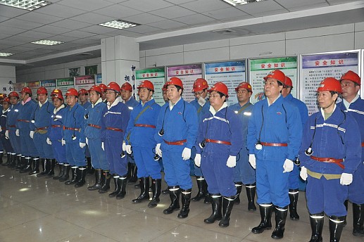 檢查組一行入井前接受安全培訓(xùn)并進(jìn)行安全確認(rèn)