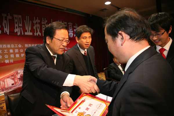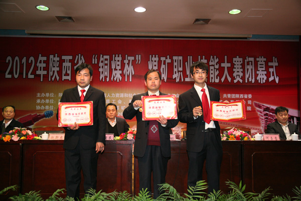 獎儀式。銅川礦業(yè)公司被省委組織部、省總工會等六部門授予團體金獎、“優(yōu)秀組織單位”。白軍鋒、王江江、趙興朝等被授予采煤司機、井下電鉗工、瓦斯檢查工等專業(yè)技術(shù)狀元;劉啟科等人被省能源化工地質(zhì)工會、省煤監(jiān)局評為優(yōu)秀組織個人。