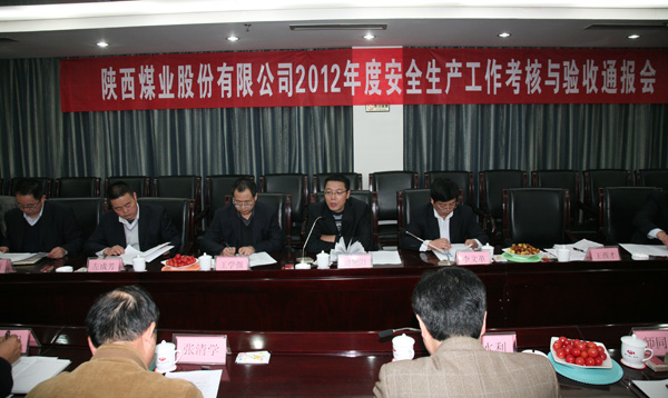 11月23日上午時(shí),陜西煤業(yè)股份有限公司副總經(jīng)理李文革帶領(lǐng)安全生產(chǎn)檢查驗(yàn)收?qǐng)F(tuán)在銅川煤業(yè)賓館二樓會(huì)議室召開(kāi)陜西煤業(yè)股份有限公司2012年度安全生產(chǎn)工作考核與驗(yàn)收通報(bào)會(huì),銅川礦業(yè)公司副總經(jīng)理、安監(jiān)局長(zhǎng)劉水利,副總經(jīng)理、總工程師師同民以及公司安監(jiān)、生產(chǎn)、動(dòng)力、通風(fēng)、機(jī)電、地測(cè)等部室負(fù)責(zé)人及玉華礦、金華山礦有關(guān)負(fù)責(zé)人參加了會(huì)議。