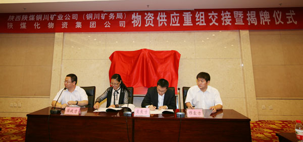 (銅川礦業(yè)公司總經(jīng)理宋志剛、陜煤化物資集團(tuán)黨委書記、總經(jīng)理沈蘭禹共同揭牌)