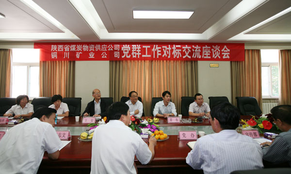 陜西煤化集團(tuán)黨建質(zhì)量管理體系啟動(dòng)大會(huì)在銅川礦業(yè)公司召開后,銅川礦業(yè)黨建工作向科學(xué)化、規(guī)范化、制度化邁進(jìn)的成功經(jīng)驗(yàn)引起了極大的反響。9月13日下午2時(shí)30分,陜西省物資供應(yīng)公司工會(huì)主席顏文哲等一行6人來到銅川礦業(yè)公司,與銅川礦業(yè)公司黨群各部門進(jìn)行座談,雙方暢談創(chuàng)新理念,交流寶貴經(jīng)驗(yàn)。銅川礦業(yè)公司黨委副書記、紀(jì)委書記徐捷,原黨委副書記張志文,黨辦室主任許江濤、組織部長王志峰、紀(jì)委副書記王發(fā)明、礦區(qū)工會(huì)副主席梁桂香、宣傳部副部長席選民、團(tuán)委副書記孔艷、企改部副部長李樹森等參加座談會(huì)。