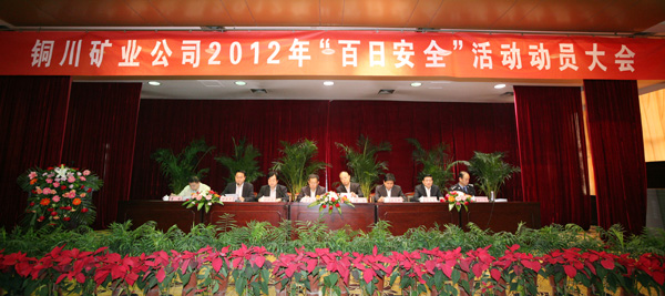 9月23日上午9時,銅川礦業(yè)公司在煤業(yè)賓館二樓會議室召開2012年“百日安全”活動動員大會。公司總經(jīng)理宋志剛,公司黨委書記黃河,黨委副書記、工會主席劉啟科,公司副總經(jīng)理、安監(jiān)局長劉水利,副總經(jīng)理、總工程師師同民,副總經(jīng)理薛鳴,原黨委副書記張志文,機關(guān)副總工程師、各部門負責人,八對生產(chǎn)礦井礦長、書記、安監(jiān)處長、工會主席、除跟班值班外其他礦級領(lǐng)導、安全科長、通風科長、團委書記,輔助單位主要領(lǐng)導、分管領(lǐng)導共150人參加了會議。會議由公司副總經(jīng)理、總工程師師同民主持。