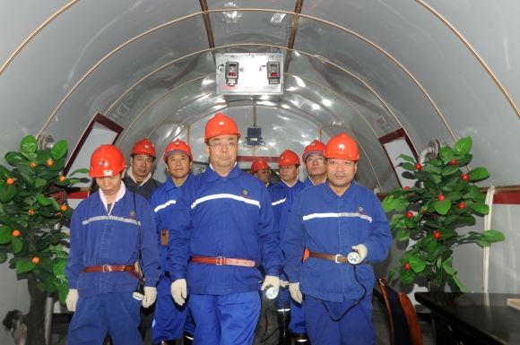 隨后,黃書記一行在該礦黨政領(lǐng)導(dǎo)的陪同下深入井下,實(shí)地查看安全質(zhì)量標(biāo)準(zhǔn)化建設(shè)、永久避難硐室和西翼軌道大巷掘進(jìn)工作面進(jìn)展情況,并在井下工作面與當(dāng)班職工進(jìn)行了親切交談。