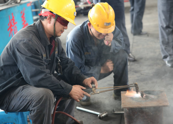 在新鄭煤電公司,劉書記一行先后參觀了該公司地面企業(yè)文化長廊、調(diào)度中心、礦燈房、主提升機房、并在機修隊觀看了該公司職工表演的“雞蛋推礦車”、“燈泡上切鐵絲”、“電鉆剝雞蛋”、“蒙眼劃圓割鐵片”等“絕招、絕技、絕活”表演。