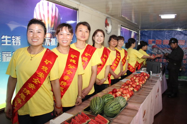 徐家溝礦礦嫂服務(wù)隊(duì)在井口熱情服務(wù)