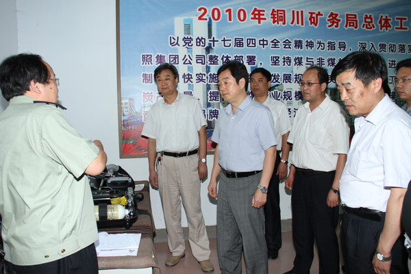 13日下午,高勤社一行首先到職工中??赐繂柫巳∥ㄒ粎⒓拥诰艑脟业V山救援技術(shù)競賽的銅川礦業(yè)公司集訓(xùn)隊。來到職工中專后,高勤社與在這里集訓(xùn)的12名救護(hù)隊員一一握手,向他們表示親切慰問,希望銅川礦業(yè)公司集訓(xùn)隊加強(qiáng)訓(xùn)練,提高水平,代表全省在9月份將要舉行的第九屆國家礦山救援技術(shù)競賽中取得優(yōu)異成績。高勤社一行還參觀了集訓(xùn)隊作訓(xùn)室、察看了集訓(xùn)隊訓(xùn)練場地及訓(xùn)練設(shè)備設(shè)施等情況。