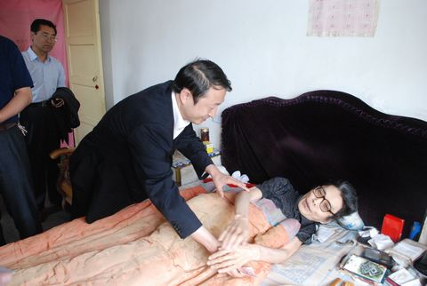 編者按:5月25日,陜西省作家協(xié)會副主席、著名作家莫伸,作家高亞東和陜西煤業(yè)化工集團公司企業(yè)文化部部長孫鵬在鴨口煤礦公司黨委書記蘭阿利的陪同下深入銅川礦業(yè)鴨口煤礦公司調(diào)研采風(fēng)期間,登門慰問了該礦身殘志堅、自強不息的“輪椅詩人”王鐵毛。