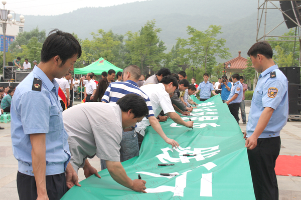 接著,銅川市政協(xié)副主席靳賢孝、下石節(jié)礦黨委書記李國璧等環(huán)保志愿者在印有“攜手環(huán)保,構(gòu)筑綠色,踐行文明”字樣的橫幅上鄭重簽名。該礦青年志愿者還向出席活動(dòng)儀式的領(lǐng)導(dǎo)和干部職工及家屬散發(fā)了3000多份環(huán)境保護(hù)宣傳材料和1000多個(gè)印有“保護(hù)環(huán)境,人人有責(zé)”字樣的環(huán)保手提袋。