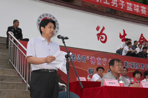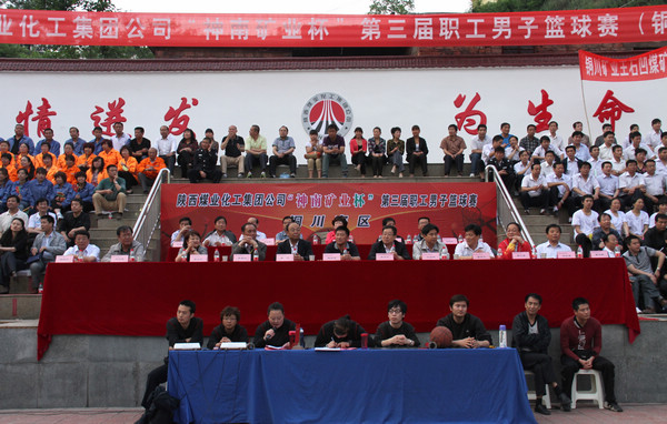 陜西煤業(yè)化工集團(tuán)公司副總經(jīng)理魏鐵軍致開幕詞,他說,陜西煤業(yè)化工集團(tuán)公司“神南礦業(yè)杯”第三屆職工男子籃球賽銅川賽區(qū)的比賽正式拉開帷幕,這是集團(tuán)公司廣大干部職工文化體育生活中的一件大喜事。他代表集團(tuán)公司和大賽組委會,向各各參賽代表隊(duì)和全體教練員、運(yùn)動員、裁判員、工作人員及現(xiàn)場觀戰(zhàn)的職工家屬,表示熱烈的歡迎和誠摯的問候,向大力支持本次比賽的銅川礦業(yè)公司表示衷心的感謝。魏鐵軍要求全體運(yùn)動員嚴(yán)格遵守比賽規(guī)則,發(fā)揚(yáng)頑強(qiáng)拼搏、團(tuán)結(jié)互助的精神,賽出競技水平,賽出道德風(fēng)尚,賽出個性風(fēng)采,賽出團(tuán)結(jié)友誼,充分展現(xiàn)集團(tuán)公司廣大干部職工熱愛健身運(yùn)動、積極奮發(fā)向上的精神風(fēng)貌。同時,希望全體裁判員和工作人員要堅持公開、公正、公平的原則,嚴(yán)肅比賽紀(jì)律,認(rèn)真負(fù)責(zé)地做好各項(xiàng)工作,確保比賽順利進(jìn)行。希望通過本屆籃球賽的舉辦,在全集團(tuán)公司進(jìn)一步掀起全民健身的熱潮,鼓舞廣大干部職工牢固樹立終身運(yùn)動的觀念,用陽光的心態(tài)和健康的身體,為集團(tuán)公司實(shí)現(xiàn)新的跨越發(fā)展再做新的貢獻(xiàn)。