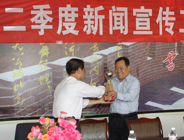 會上,各單位分別匯報了本單位一季度外發(fā)稿件數(shù)量。徐家溝礦黨委宣傳部部長肖子秀,玉華礦黨委宣傳部部長王銀平介紹了該礦新聞報道工作經(jīng)驗,東坡礦劉偉、鐵運分公司楊勇分別代表優(yōu)秀通訊員做了經(jīng)驗介紹。公司黨委宣傳部新聞業(yè)務主管劉孝文、網(wǎng)站編輯郝龍分別就公司二季度新聞宣傳工作要點和公司網(wǎng)站存在問題及投稿要求等情況進行了通報。與會領(lǐng)導為獲得一季度新聞宣傳工作優(yōu)勝單位的徐家溝煤礦、奧博企業(yè)集團頒發(fā)了流動獎杯。