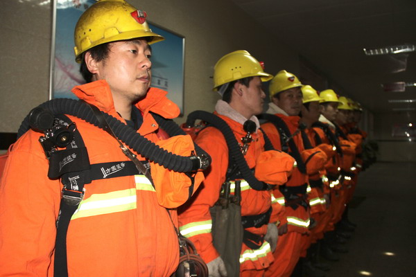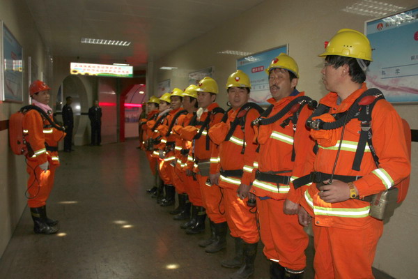 東坡礦兼職救護(hù)隊(duì)員整裝演練場景