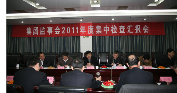 3月20日上午9時,集團監(jiān)事會2011年度集中檢查匯報會在煤業(yè)賓館二樓會議室召開。集團監(jiān)事會主席趙秦川、監(jiān)事會辦公室主任孫望科、處長趙慶軒、姜建民、黨永軍以及集團公司副總慕生江等一行六人聽取了公司總經(jīng)理宋志剛匯報。公司黨委書記黃河、副總經(jīng)理薛鳴、封建利,總經(jīng)理辦、黨辦、組織部、規(guī)劃部、勞社部、企管部、人事部、財務部、審計部、項目處、信訪處、棚改辦等負責人參加了會議。