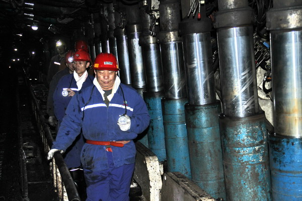 黃河書記到礦后,首先向該礦黨政主要領(lǐng)導(dǎo)仔細(xì)詢問了該礦目前的安全生產(chǎn)和煤炭銷售及經(jīng)營狀況。黃書記十分關(guān)心該礦的煤炭質(zhì)量及銷售情況,聽取有關(guān)情況后,立即帶領(lǐng)隨行人員到該礦儲煤場現(xiàn)場察看了煤炭存量和煤質(zhì)情況。為了進(jìn)一步了解掌握實際情況,上午10時30分左右,黃河書記又帶領(lǐng)隨行人員更衣下井,與該礦黨政主要領(lǐng)導(dǎo)一同深入正在生產(chǎn)的422綜采工作面,對系統(tǒng)特別是綜采工作面的地質(zhì)變化及運行狀況進(jìn)行了認(rèn)真詳細(xì)的調(diào)查了解。