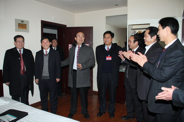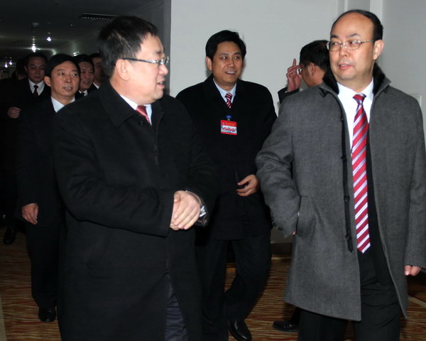 2月8日下午,公司領(lǐng)導(dǎo)班子全體成員,一同看望與會代表團(tuán)代表。公司總經(jīng)理宋志剛、黨委書記黃河、黨委副書記、工會主席劉啟科、黨委副書記、紀(jì)委書記徐捷、副總經(jīng)理劉水利、師同民、薛鳴、封建利和張志文等一起來到各小組討論地點,與大家一一握手致意,大家談笑風(fēng)生,氣氛極為融洽??偨?jīng)理宋志剛說,大家開好會,要吃好、休息好,鼓足干勁,齊心協(xié)力把今年的指標(biāo)完成好。黨委書記黃河向各代表團(tuán)同志一一介紹班子的幾位新成員,即劉啟科、徐捷、師同民等。他說,啟科同志是新職務(wù),徐捷、同民是新提任的公司領(lǐng)導(dǎo),以后工作中加強聯(lián)系,方便工作。2月9日開會討論期間,各位領(lǐng)導(dǎo)和與會代表暢所欲言,共話企業(yè)改革與發(fā)展,共同描繪礦業(yè)公司未來的錦繡前程和美好藍(lán)圖。