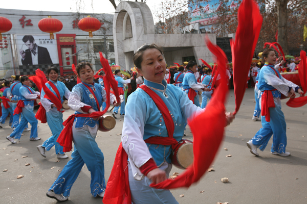 瞧,威武的工人軍樂隊走來。他們以最昂揚的旋律、最飽滿的熱情、最整齊的隊列行進變換,為銅川礦區(qū)喜慶元宵佳節(jié)奏響剛勁力度、氣勢恢宏的發(fā)展贊歌???,威風的鑼鼓隊跑來。他們用鏗鏘的鑼鼓抒發(fā)礦工的情懷,唱出心中最美的歌。那些有了些年紀的大嬸們,用最開心的笑容展示著今天美好的生活。