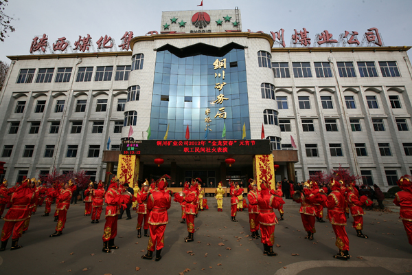 正月十五的上午,銅川礦業(yè)公司機關大院中嘹亮的軍樂奏起,震耳鑼鼓響起,歡慶的秧歌扭起,歡笑的人們跳起。銅川礦業(yè)公司職工家屬歡歡喜喜鬧元宵。公司總經理宋志剛、黨委書記黃河、黨委副書記、工會主席劉啟科、黨委副書記、紀委書記徐捷、副總經理劉水利、副總經理封建利、原黨委副書記張志文以及機關各部室負責人、機關干部共同觀看了社火表演 。