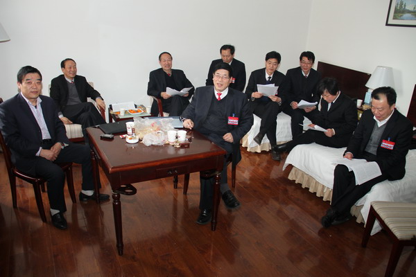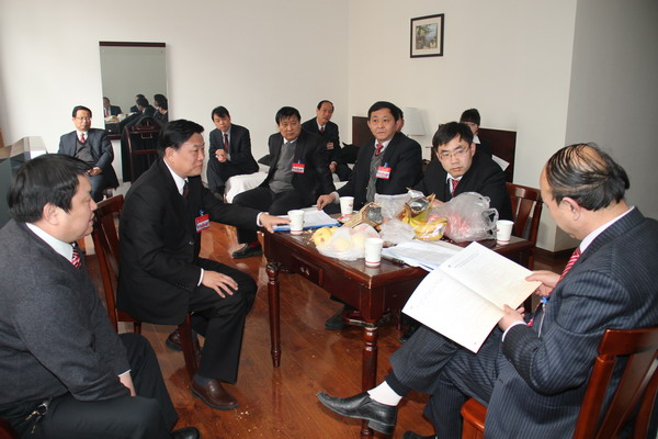 公司黨委書記黃河、黨委常委、副總經(jīng)理劉水利參加金華山礦代表團小組討論會