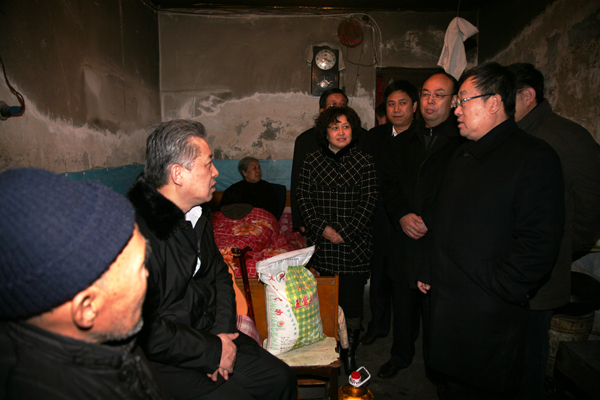 在關(guān)長(zhǎng)喜家中,華煒握著關(guān)長(zhǎng)喜的手關(guān)切地噓寒問暖。當(dāng)?shù)弥救嘶加行呐K病,其老伴患腦溢血花費(fèi)3萬(wàn)多元,至今癱瘓?jiān)诖玻A煒非常同情地說,困難是暫時(shí)的,有困難找社區(qū),找組織解決,今天給你們送來米面油和1000元慰問金,希望你們過個(gè)好年。隨即,華煒又問宋志剛局長(zhǎng)和社區(qū)主任司金萍,他們的住房條件不好,是不是都分上房子了?宋志剛說,像關(guān)師傅這些退休的老職工,都屬于棚戶區(qū)改造的搬遷戶,都已經(jīng)登記過了,關(guān)師家的房子已經(jīng)分過了,今年就可入住了。