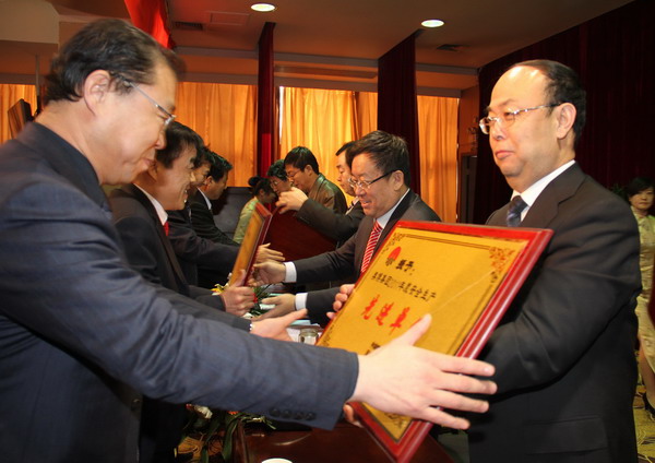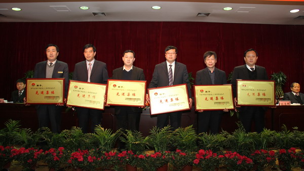 先進(jìn)集體及受到嘉獎(jiǎng)單位上臺(tái)領(lǐng)獎(jiǎng)