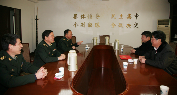 銅川軍分區(qū)司令員董少雄、政委黃群明與公司副總經(jīng)理郭寶輝、封建利暢談軍民魚(yú)水情