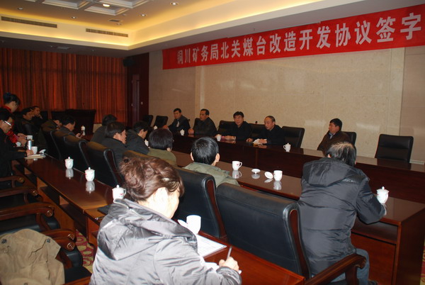 12月22日,礦務(wù)局北關(guān)煤臺(tái)改造開發(fā)協(xié)議簽字儀式在煤業(yè)賓館餐廳三樓會(huì)議室隆重舉行。局紀(jì)委、審計(jì)處、財(cái)務(wù)處、資產(chǎn)辦、規(guī)劃處、企改處、物業(yè)總公司、多經(jīng)總公司、鐵運(yùn)公司負(fù)責(zé)人和銅川華秦房地產(chǎn)開發(fā)有限公司執(zhí)行董事長(zhǎng)竇建華、天龍房地產(chǎn)開發(fā)有限責(zé)任公司董事長(zhǎng)張文龍等出席簽字儀式。