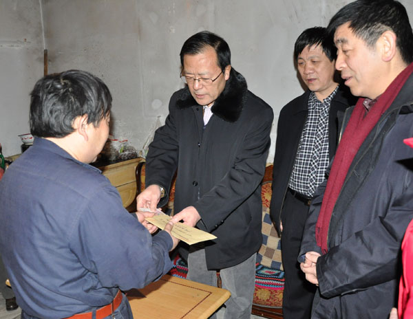 在困難職工李小更家,盧主席親切地對(duì)他說,“我以前來看過你,還記不記得?”當(dāng)了解到李小更一家能夠積極面對(duì)自身困難,想方設(shè)法拜托困境的情況后,他表示贊賞。同時(shí)鼓勵(lì)李小庚說:要相信困難是暫時(shí)的,我們幫一把,你再加把勁,一定會(huì)度過難關(guān)的。臨別時(shí),他親切叮囑李小更,工作時(shí)一定要牢記安全,并祝福他工作順利,身體健康。